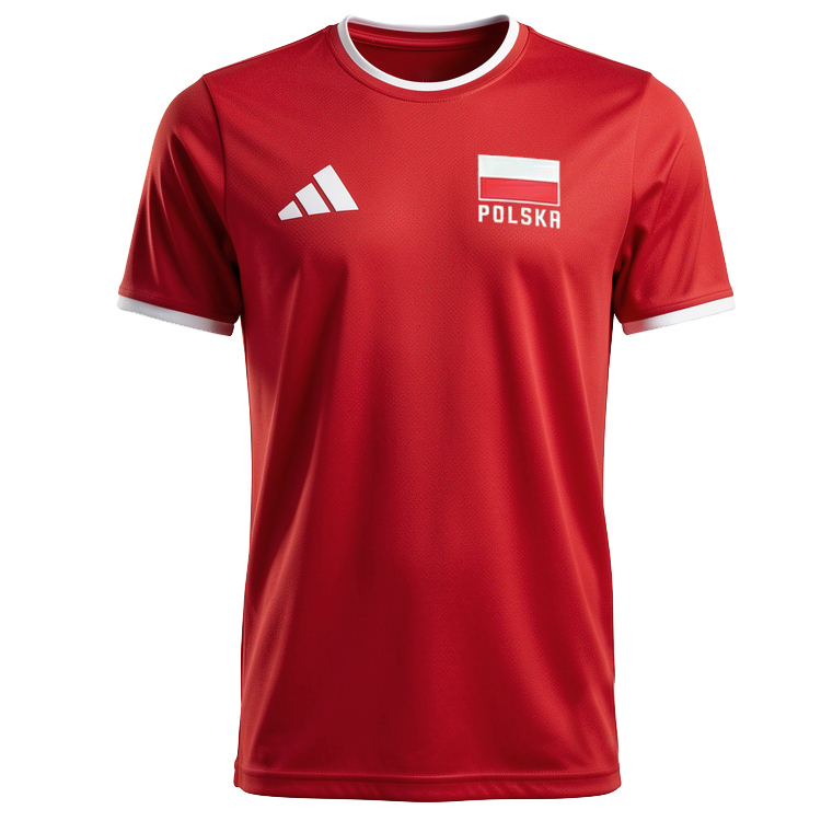 Koszulkę wykonano w 100% z recyklingowanego poliestru, dlatego jest lekka, wytrzymała i przyjazna dla środowiska. Intensywny czerwony kolor przyciąga uwagę, natomiast nadruk flagi Polski oraz napisu POLSKA na piersi podkreśla kibicowski charakter.