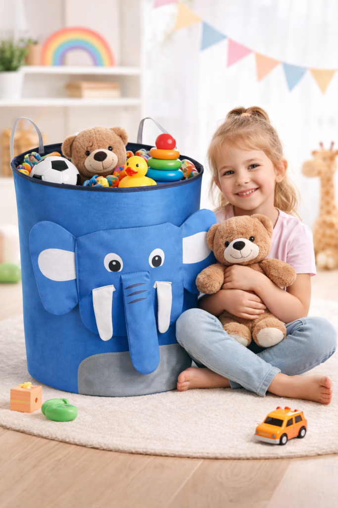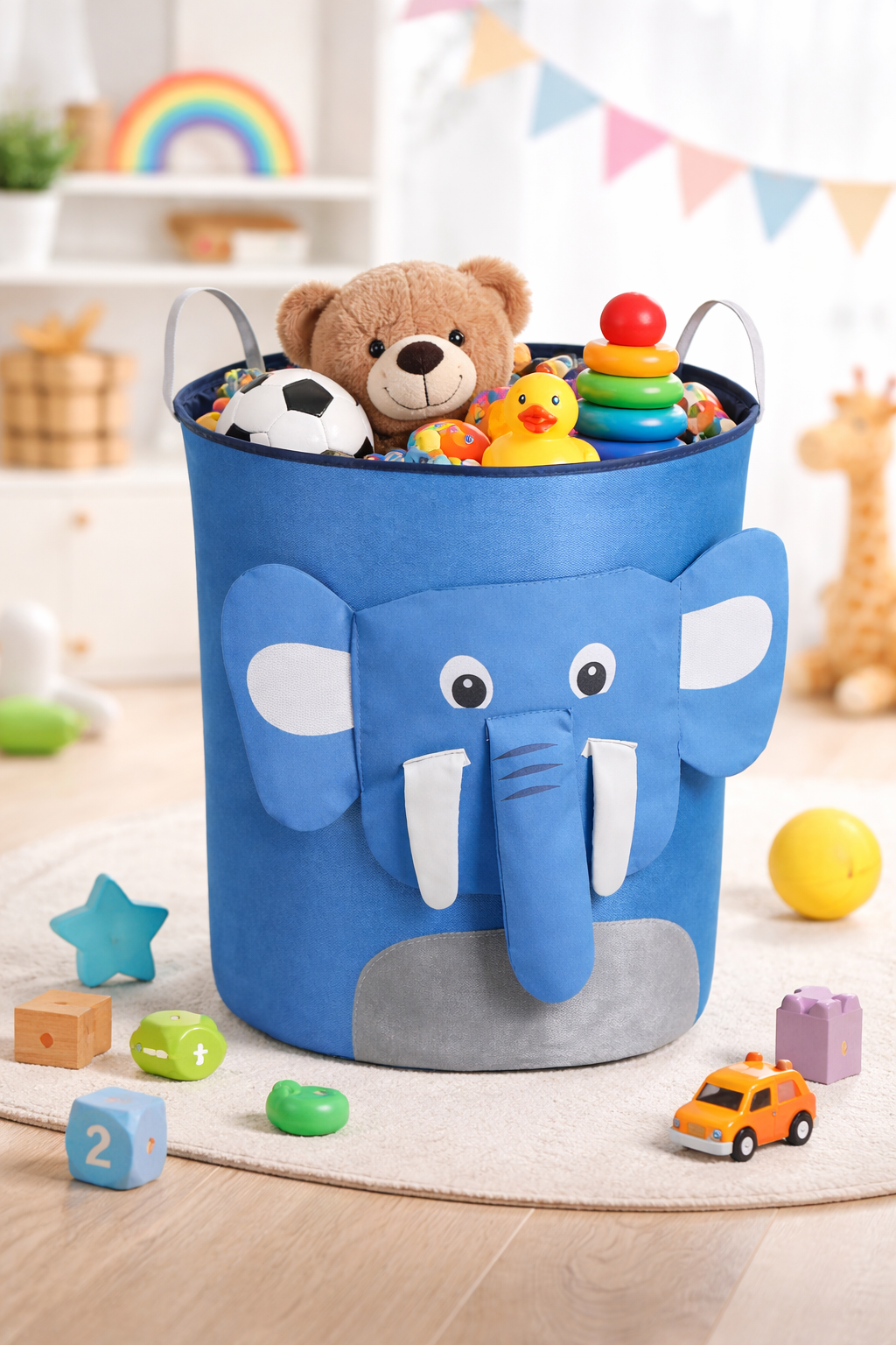 Kosz na zabawki niebieski słonik to idealne połączenie funkcjonalności i uroczego designu. Doskonale sprawdzi się w pokoju dziecka, pomagając w utrzymaniu porządku, a jednocześnie stanowiąc estetyczną dekorację wnętrza. Dzięki przyjaznej grafice słonika kosz wprowadza do dziecięcej przestrzeni radosną i ciepłą atmosferę.