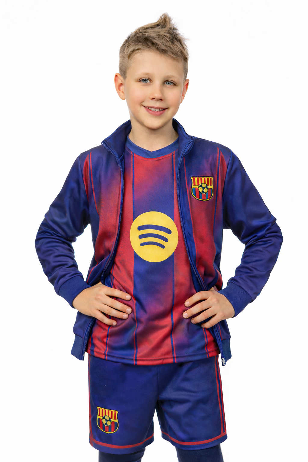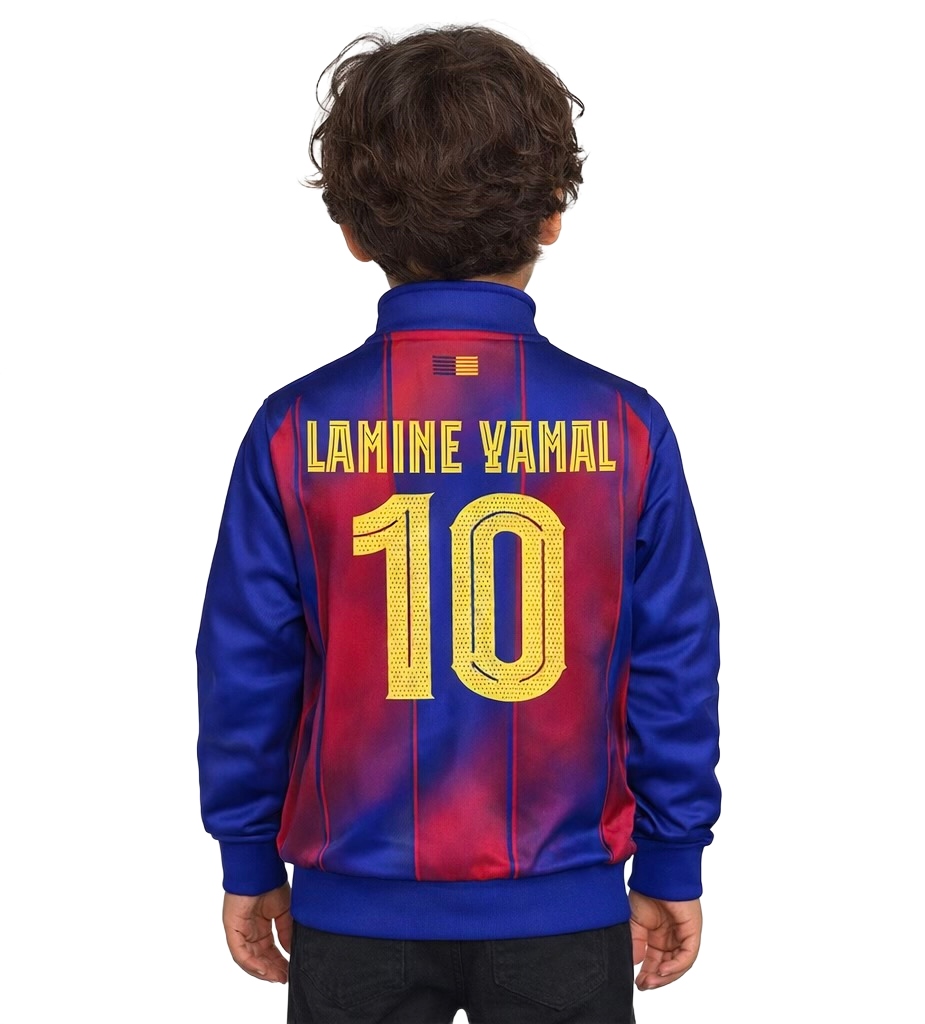 Stylowa bluza piłkarska LAMINE YAMAL 10 Barcelona 2026 to idealna propozycja dla młodych fanów piłki nożnej, którzy chcą wyrazić swoją pasję i dumę z ulubionego klubu. Dzięki nowoczesnemu, sportowemu designowi inspirowanemu Barceloną, dynamicznej kolorystyce oraz wyraźnemu nadrukowi z nazwiskiem i numerem, bluza prezentuje się wyjątkowo i przyciąga wzrok. Co więcej, jej uniwersalny styl sprawia, że świetnie nadaje się zarówno na trening, jak i na mecz czy do codziennego noszenia.