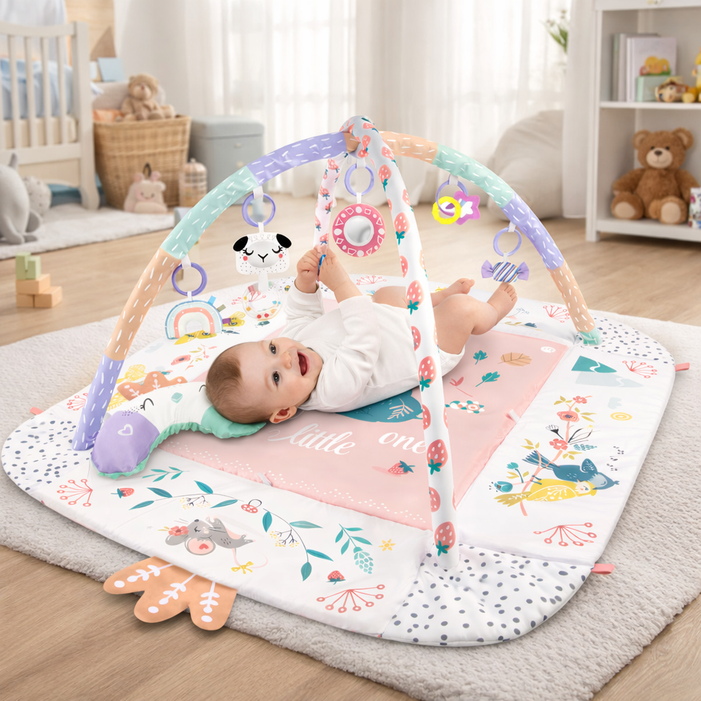 Rewelacyjna, mata interaktywna dla dziewczynki różowa bez wątpienia wpływa pozytywnie na rozwój wszystkich zmysłów u niemowlaka. Nasza mata to świetne miejsce na relaks, zabawę i odkrywanie świata. Bardzo duża mata dla najmłodszych dzieci, w stonowanych kolorach z ptaszkami, myszkami i kwiatuszkami jest z pewnością idealna dla każdej malutkiej dziewczynki.