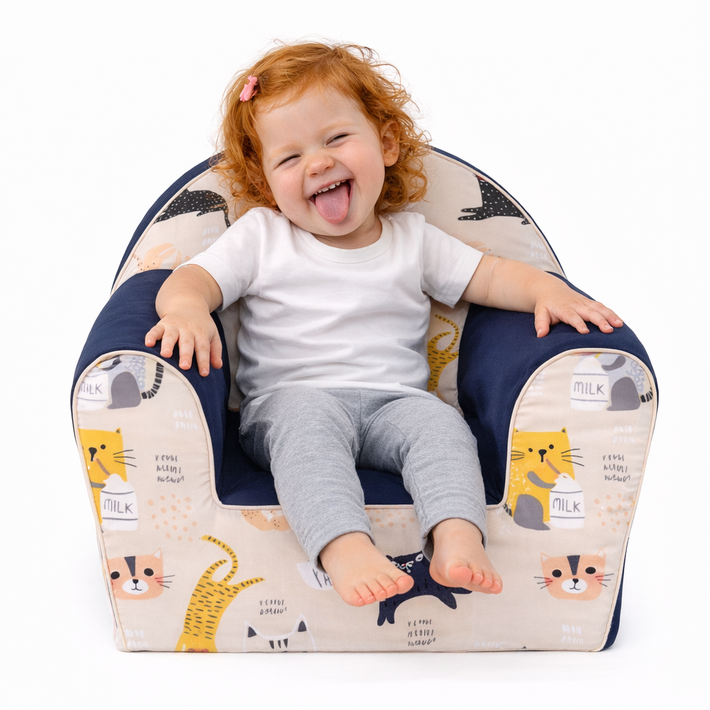 Śliczny i wygodny miękki fotelik z pianki jest super dekoracją pokoju malucha. Ponad to posiada on również praktyczne zastosowanie, idealnie nadaje się do zabawy i wypoczynku. Jest bardzo mięciutki i wygodny, dlatego dzieci go uwielbiają. Jego ciekawy i kolorowy wzór zachęca maluchy do zabawy. Świetnie nadaje się do czytania lub oglądania książeczek i bajek. Fotelik w kotki z pewnością sprawdzi się jako prezent dla małej dziewczynki, która kocha zwierzątka.