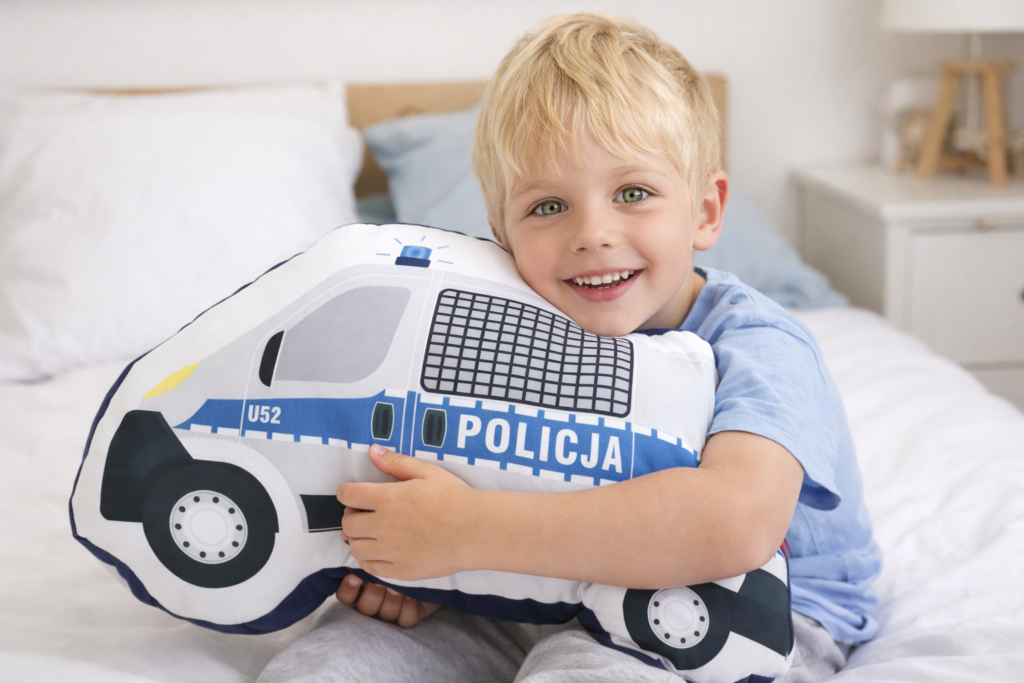 Rewelacyjna poduszka dekoracyjna radiowóz policja wykonana została z wysokiej jakości tkanin polskich producentów. Dzięki swemu oryginalnemu i ciekawemu wyglądowi doskonale dopełni dekorację dziecięcego pokoju. Taki prezent z pewnością ucieszy każdego małego chłopca, którego fascynuje policja i autka policyjne.