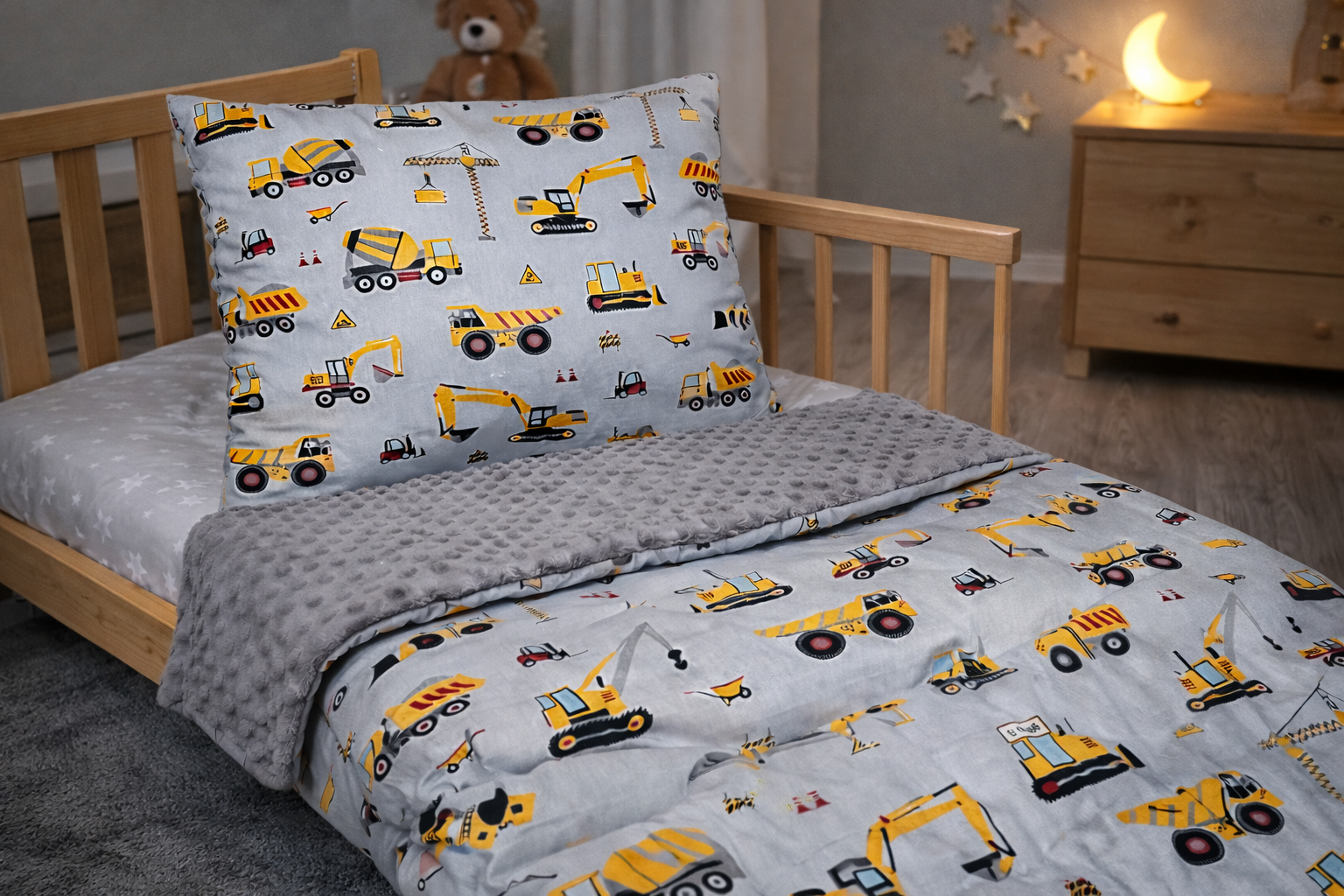 Pościel z wypełnieniem dla dzieci – wzór koparki
