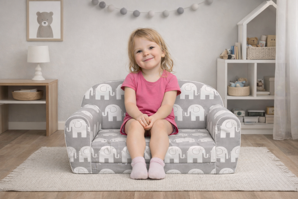 Śliczna i wygodna sofa mini słoniki jest super dekoracją pokoju malucha. Ponad to posiada ona również praktyczne zastosowanie, idealnie nadaje się do zabawy i wypoczynku. Jest bardzo mięciutka i wygodna, dlatego dzieci ją uwielbiają. Jej ciekawy i kolorowy wzór zachęca maluchy do zabawy. Świetnie nadaje się do czytania lub oglądania książeczek i bajek. Szara sofa w słoniki z pewnością sprawdzi się jako prezent dla chłopca jak i dziewczynki, dzięki temu że posiada uniwersalny kolor i wzór. Po rozłożeniu zamienia się w wygodny materac, na którym maluch może wypoczywać i bawić się do woli.