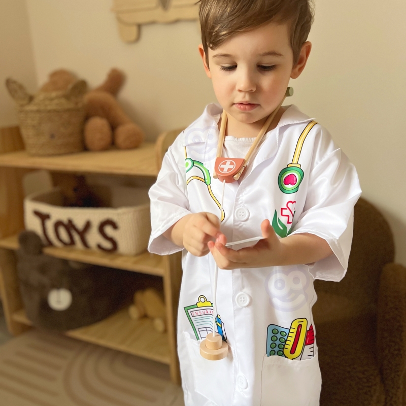 Czy Twoje dziecko marzy o karierze lekarza? Nasz strój lekarza dla dzieci to doskonały sposób, aby wspierać te marzenia i rozwinąć pasję Twojego malucha! Dzięki niemu każde dziecko poczuje się jak prawdziwy doktor, gotowy spieszyć z pomocą potrzebującym. 🌟