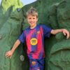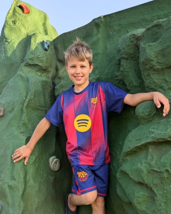Super komplet – spodenki, koszulka i getry, dla małego piłkarza. Dzięki niemu, mały zawodnik bez wątpienia poczuje się jak prawdziwa gwiazda futbolu. Jeśli Twoje dziecko uczęszcza na treningi piłki nożnej, albo całymi dniami kopie piłkę na podwórku, koniecznie wyposaż go w strój piłkarski. Stanowi on nieodłączny element, niezbędny dla każdego miłośnika tego sportu. Który w przyszłości może stać się prawdziwą gwiazdą boiska – taką jak Robert Lewandowski. Charakterystyczny strój piłkarski Barcelona dla dzieci, o żywej kolorystyce pozwoli wyróżnić się wśród innych zawodników oraz sprawi, że mały piłkarz poczuje się wyjątkowo.