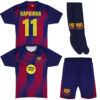 Super komplet – spodenki, koszulka i getry, dla małego piłkarza. Dzięki niemu, mały zawodnik bez wątpienia poczuje się jak prawdziwa gwiazda futbolu. Jeśli Twoje dziecko uczęszcza na treningi piłki nożnej, albo całymi dniami kopie piłkę na podwórku, koniecznie wyposaż go w strój piłkarski. Stanowi on nieodłączny element, niezbędny dla każdego miłośnika tego sportu. Który w przyszłości może stać się prawdziwą gwiazdą boiska. Strój piłkarski RAPHINHA 11, o żywej kolorystyce pozwoli wyróżnić się wśród innych zawodników oraz sprawi, że mały piłkarz poczuje się wyjątkowo.